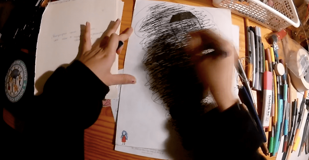 DAVRA tadqiqot guruhining 2022-yilda 15-documenta ommaviy dasturi doirasida amalga oshirilgan Alaqan filmi Aïda Adilbekning onasi va buvisini kundalik uy yumushlarida kuzatadi. Film ayollarning kundalik ro‘zg‘orda bajaradigan uy mehnatini muqaddas, shifobaxsh marosim sifatida o‘rganadi.